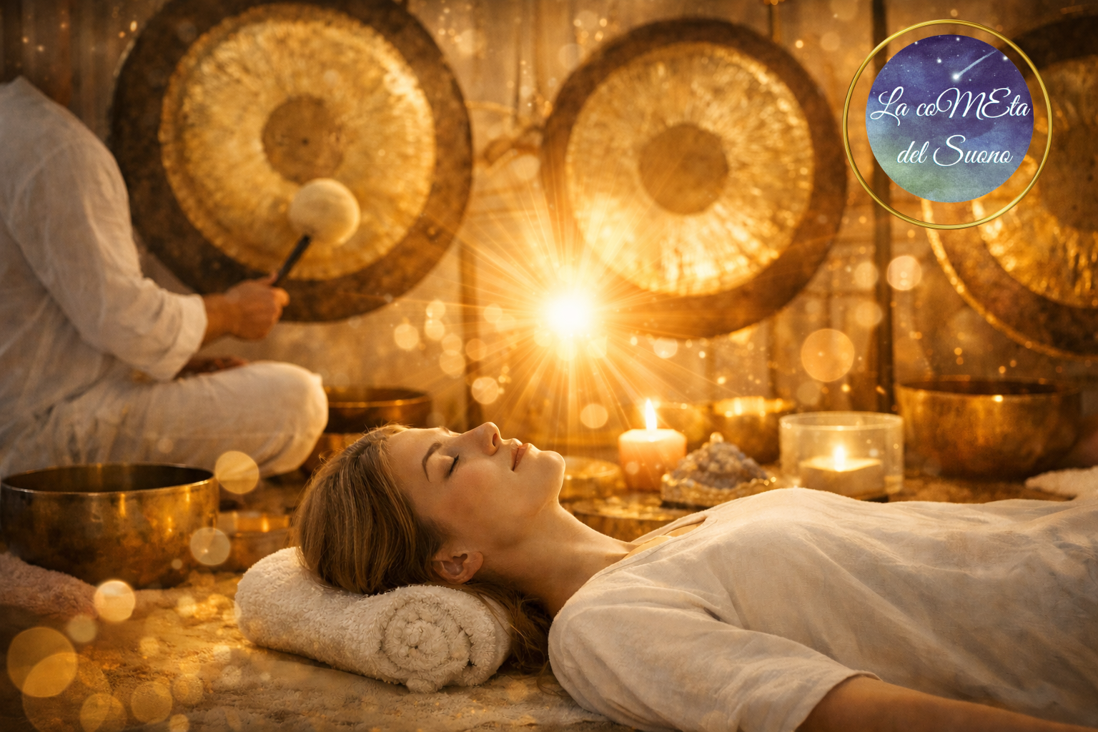 Il Bagno di Gong è un'esperienza di massaggio sonoro vibrazionale che coinvolge mente, corpo e spirito. Le vibrazioni emesse dai Gong e dagli altri strumenti ancestrali portano a un profondo rilassamento, favorendo armonia e benessere su più livelli.
